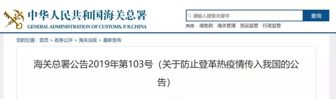 1.海關總署公告2019年第103號(關于防止登革熱疫情傳入我國的公告)