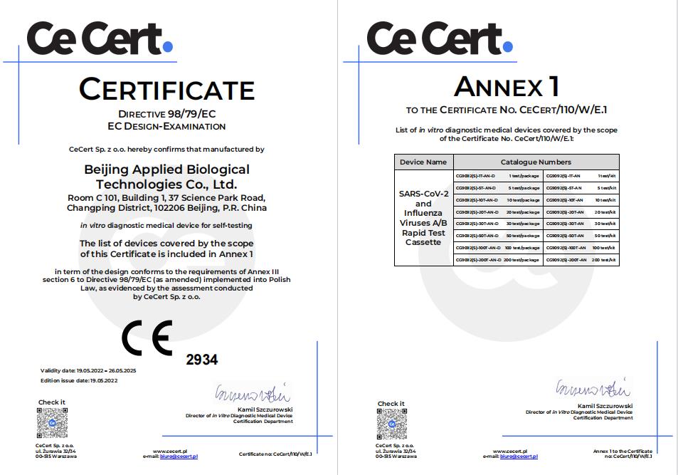 Recently, Beijing Applied Biological Technologies Co., LTD.(XABT) developed SARS-CoV-2 and Influenza Viruses A/B Rapid Test Cassette?obtained CE certificate. This shows that XABT’s SARS-CoV-2 and Inf